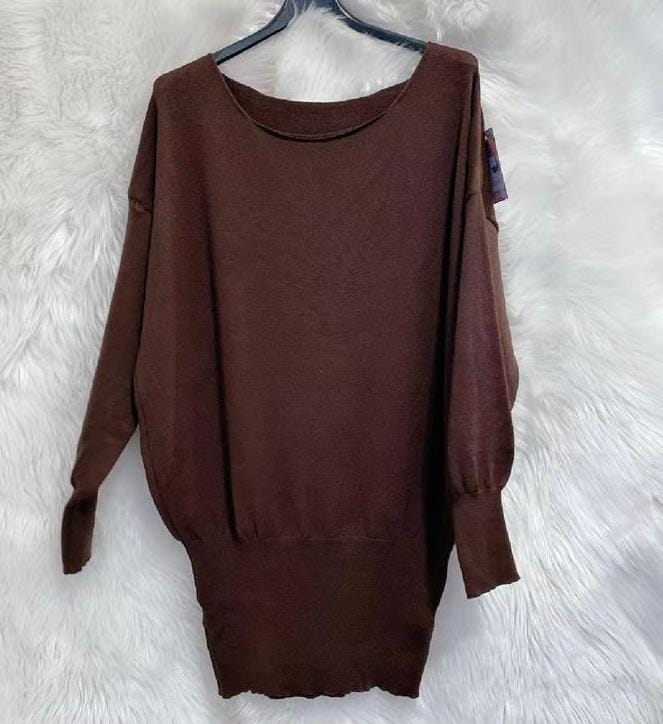 Maglia modello oversize in maglia fine, colore marrone cioccolato.
